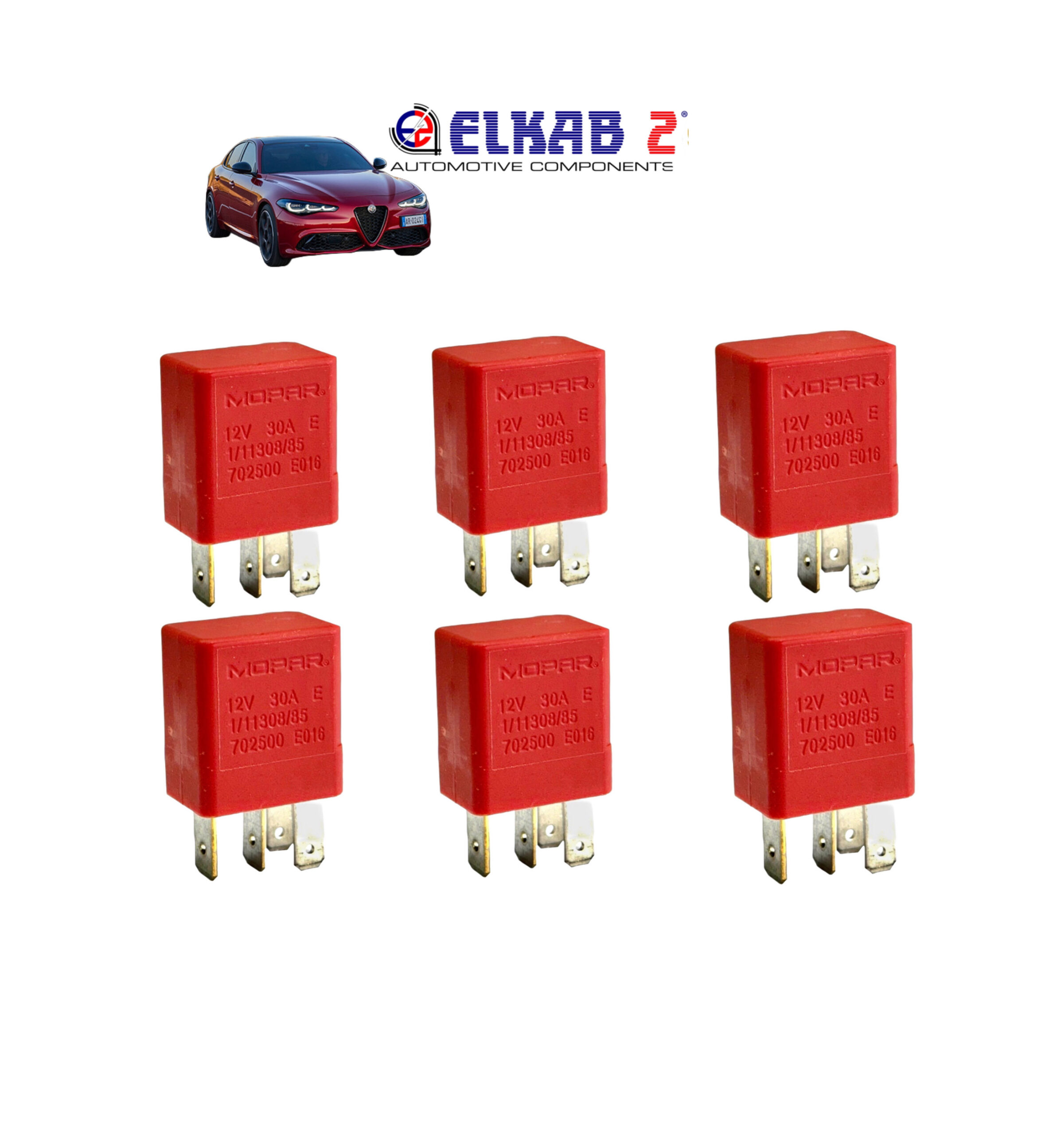 6 RELÈ MOPAR 12V 30A ORIGINALE OE 702500 SPECIFICO per ALFA ROMEO GIULIA Mini Relais Relay WaterProof 1/11308/85